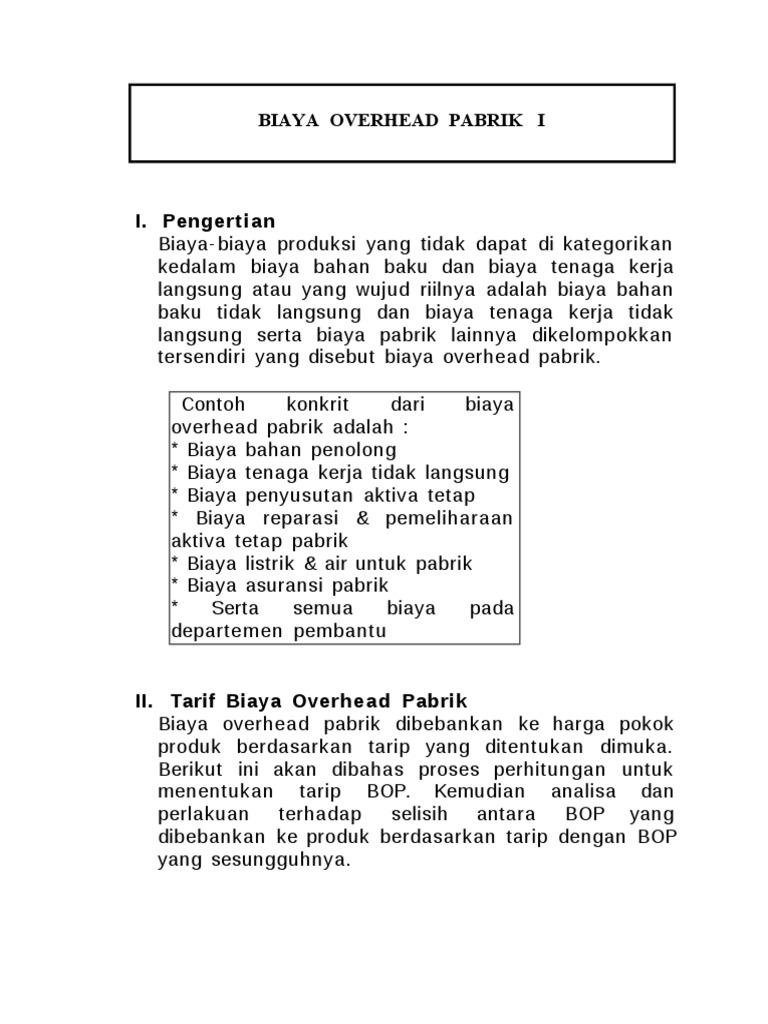 Contoh Soal Analisis Biaya Overhead Pabrik My World