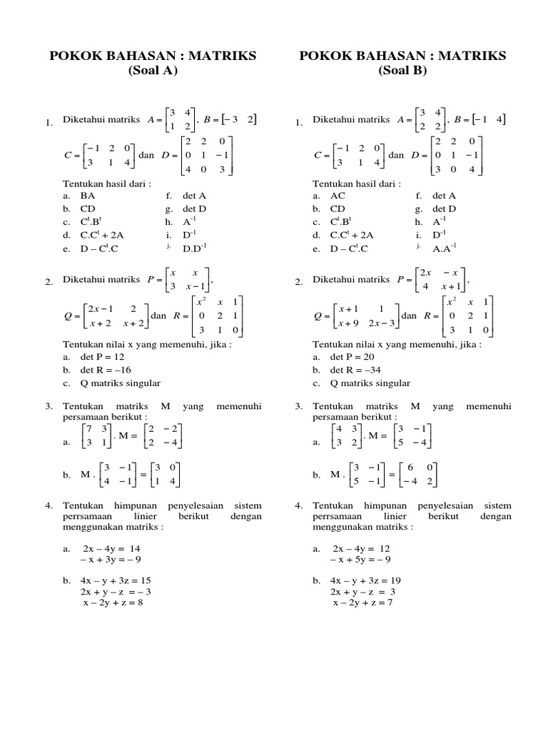 Contoh Soal Matriks Docx Document