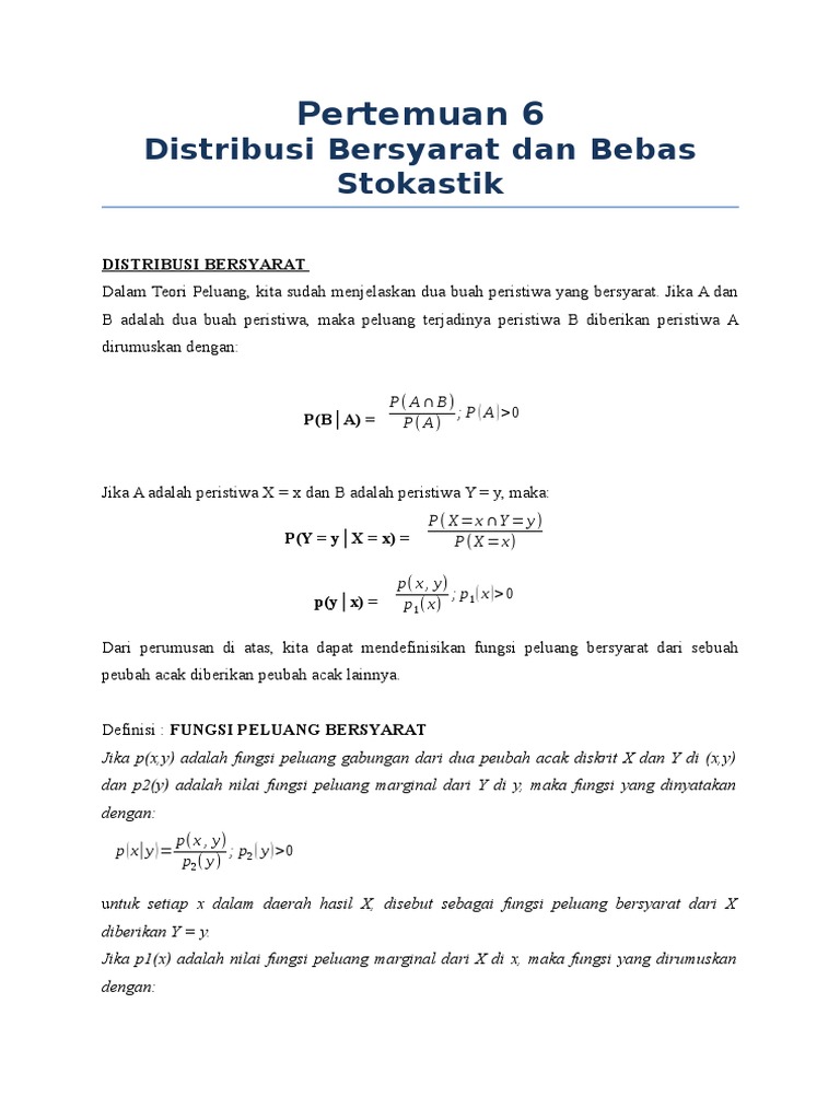 Distribusi Bersyarat Dan Bebas Stokastik Docx