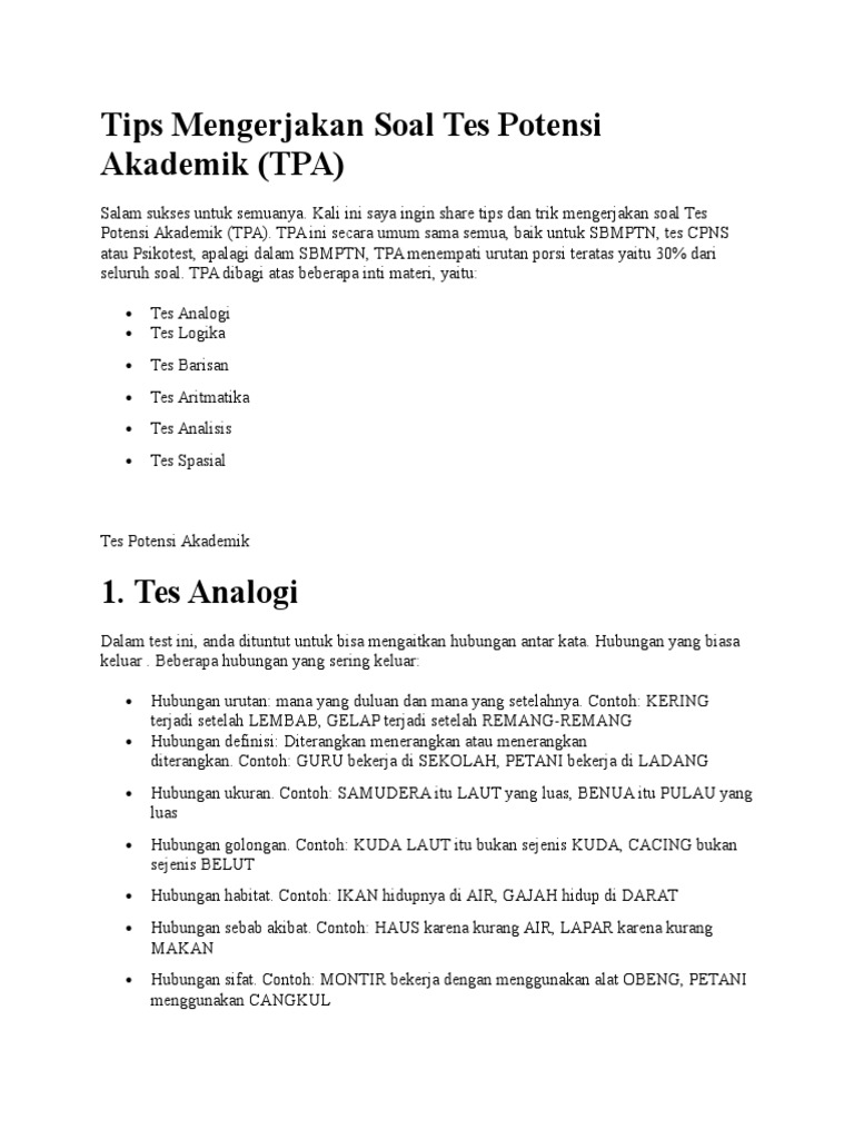 Tips Mengerjakan Soal Tes Potensi Akademik Pdf Document