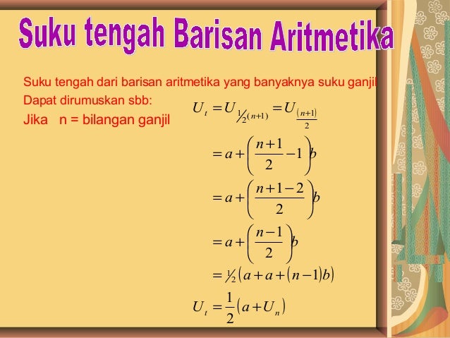 Berdasarkan dua contoh tersebut maka dapat disimpulkan bahwa suku tengah adalah sebuah suku yang berada di tengah tengah barisan dengan jumlah suku ganjil. Rumus aritmatika atau bisa di sebut juga dengan barisan aritmatika di bagi menjadi beberapa macam yang pertama ialah rumus aritmatika bertingkat sosial sn tingkat 2 aritmatika suku ke n. Lalu bagaimana cara menentukan nilai dari suku tengah tersebut.