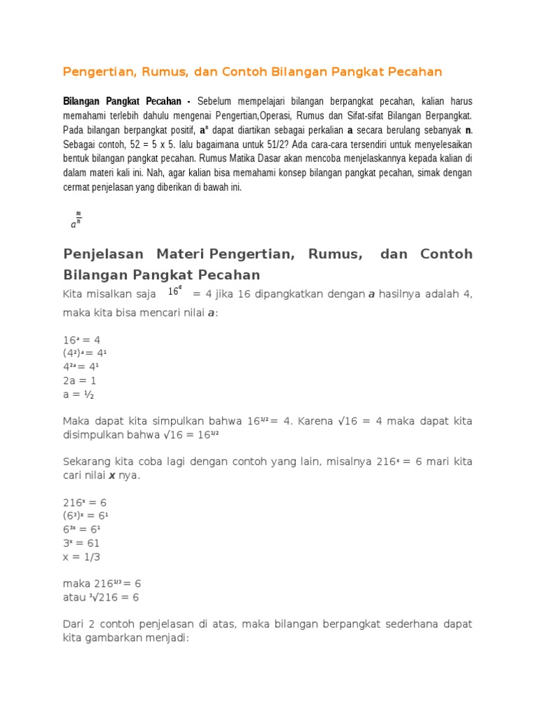 Bilangan Pangkat Pecahan Pengertian Rumus Sifat Operasi Hitung