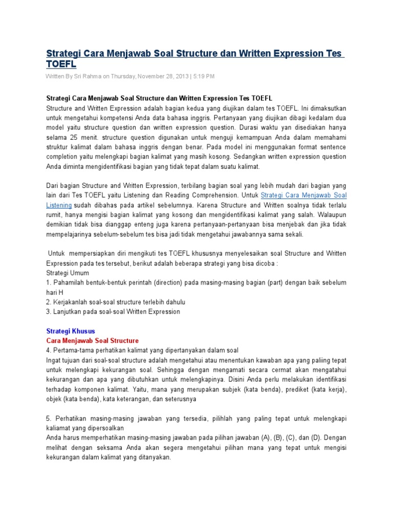 Contoh Soal Tes Toefl Structure And Written Expression